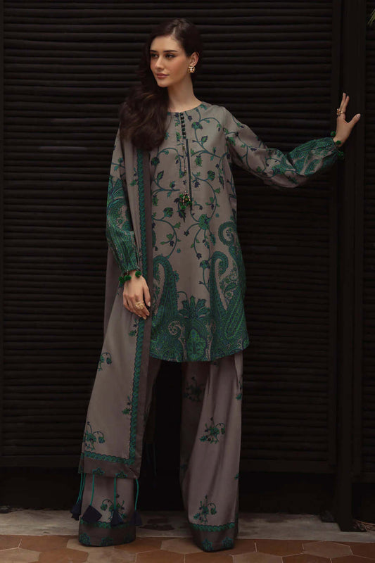 3 Piece Unstitched Embroidered Khaddar Suit with Printed Khaddar Dupatta