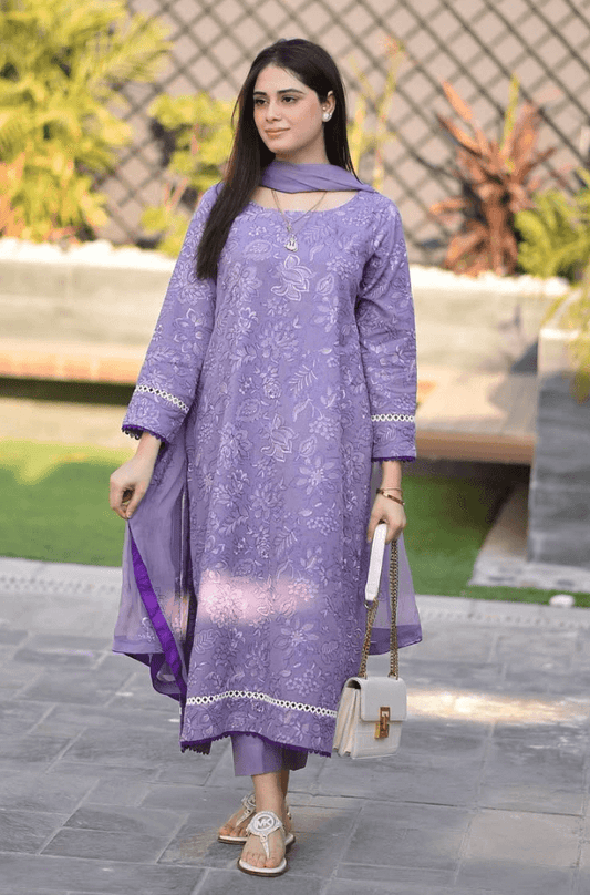 3 Piece Unstitched Heavy Embroidered Pure Lawn Suit with Printed Lawn Dupatta