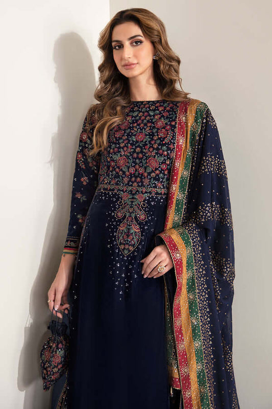 3 Piece Unstitched Heavy Embroidered Velvet Suit with Heavy Embroidered Chiffon Dupatta