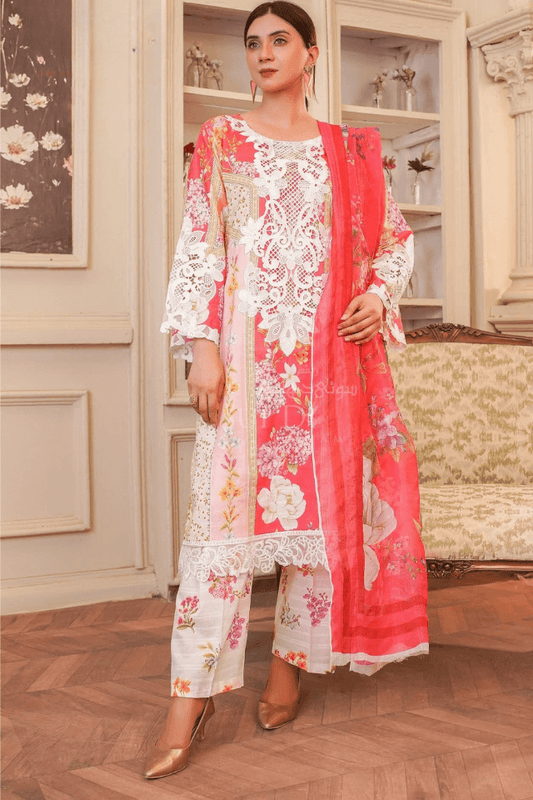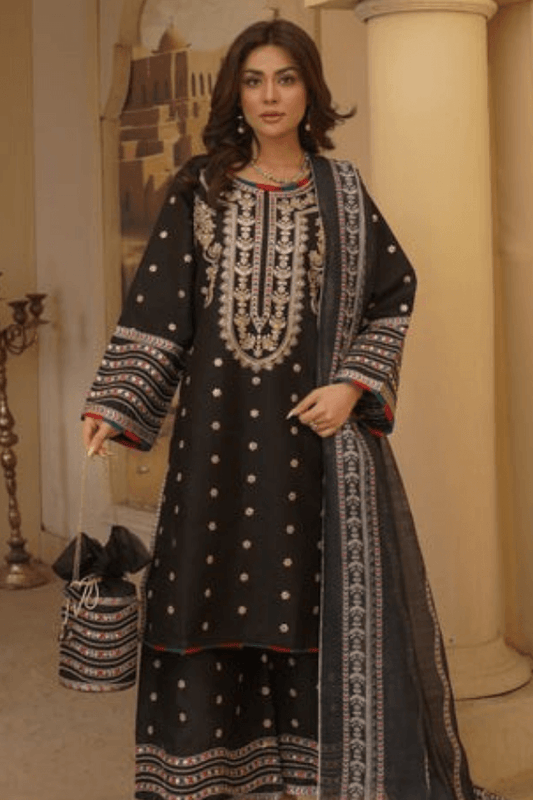 3 Piece Stitched Embroidered Lawn Suit with Printed Monaar Chiffon Dupatta