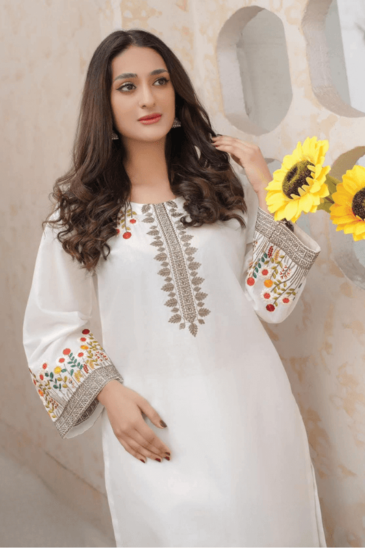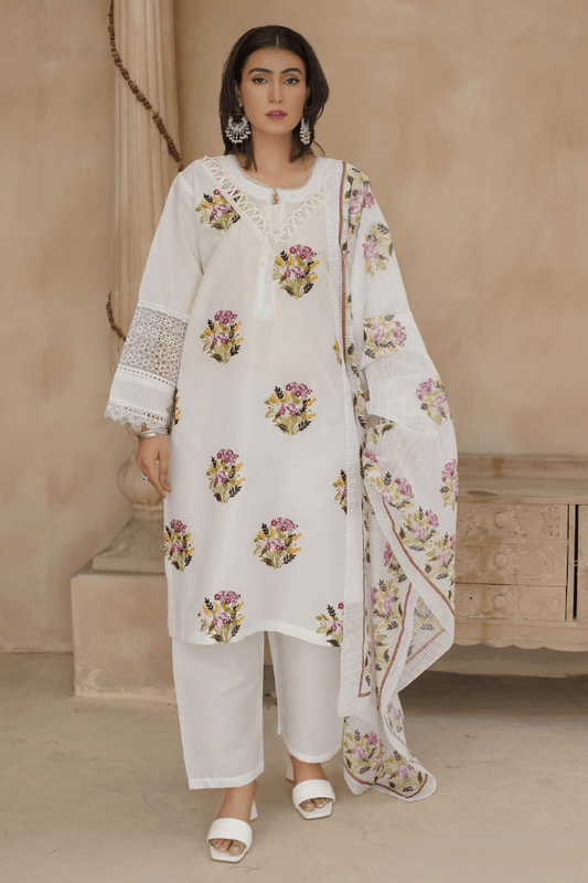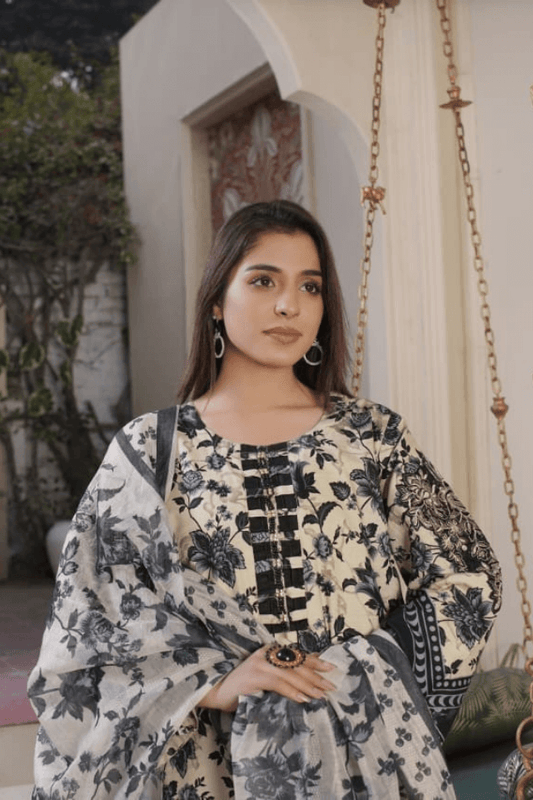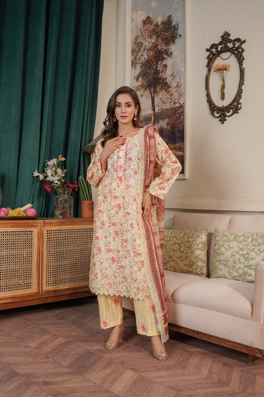 3 Piece Stitched Embroidered Lawn Suit with Embroidered Cotton Lawn Dupatta