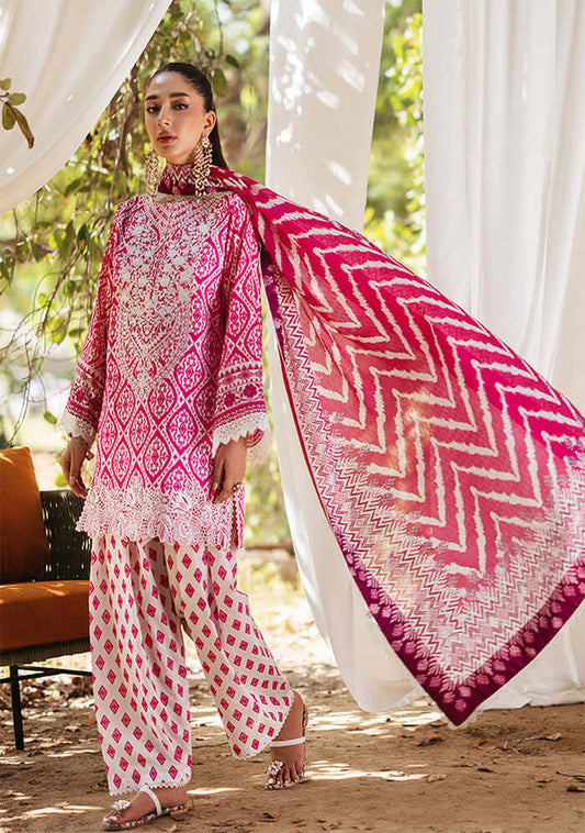 3 Piece Unstitched Embroidered Pure Lawn Suit with Fine Printed Silk Dupatta
