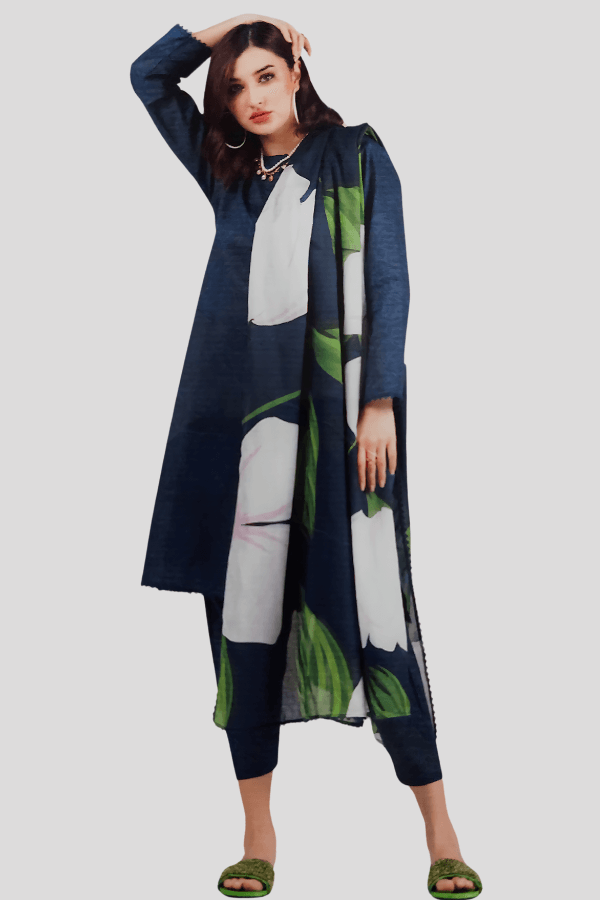 3 Piece Unstitched Digital Printed Pure Lawn Suit with Fine Printed Monaar Dupatta