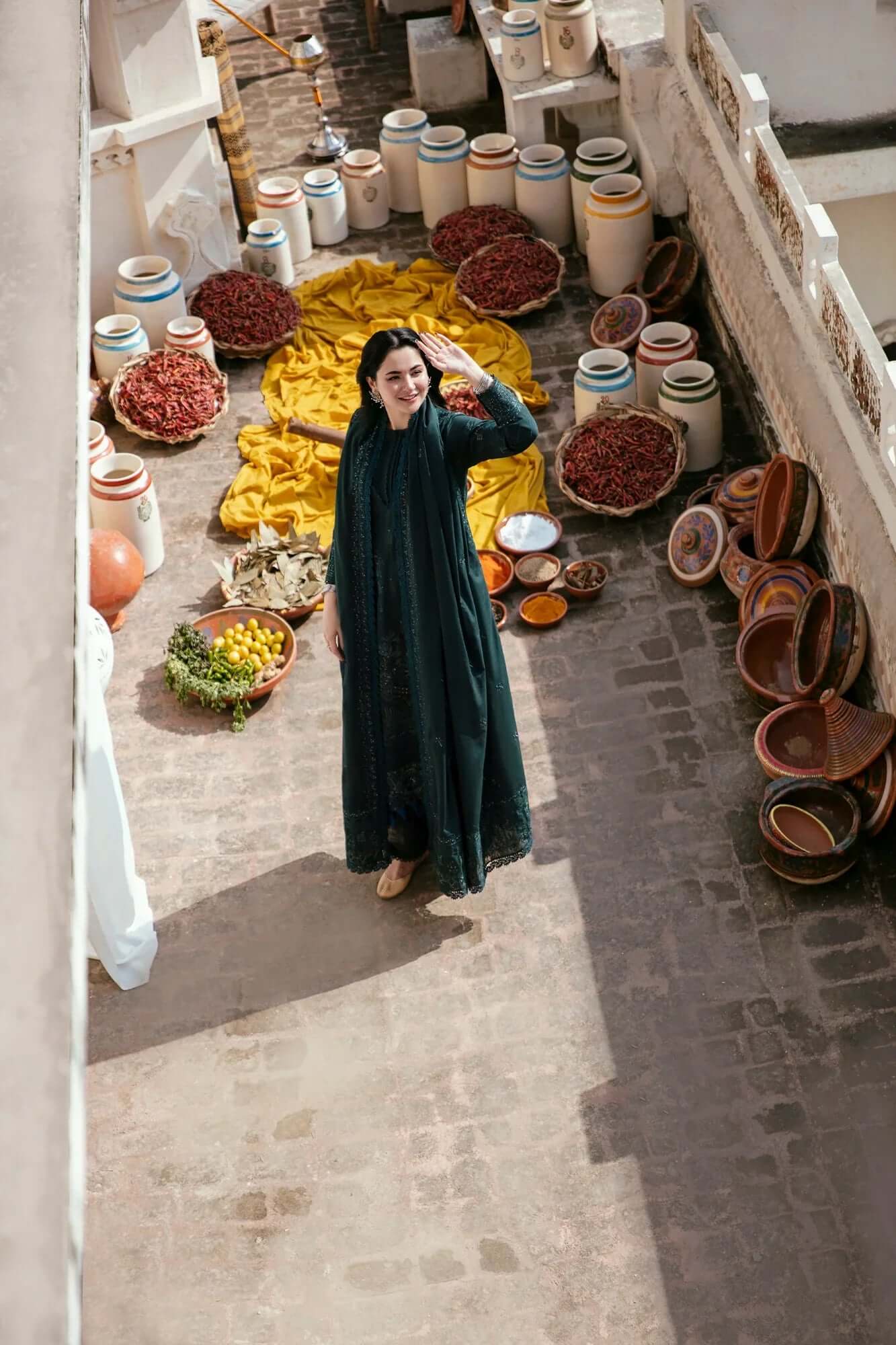 3 Piece Unstitched Heavy Embroidered Dhanak Suit with Four-sided Embroidered Dhanak Shawl