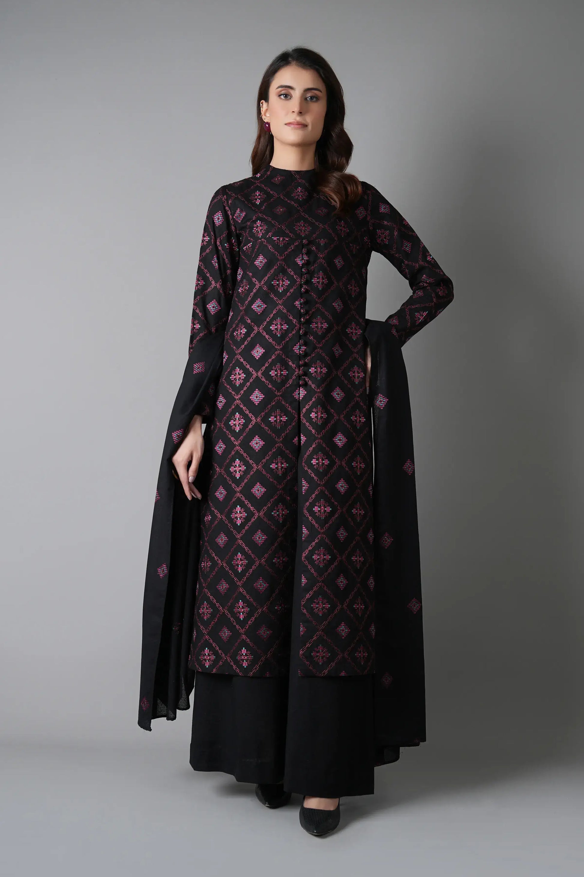 3 Piece Unstitched Heavy Embroidered Lawn Suit with Embroidered Chiffon Dupatta